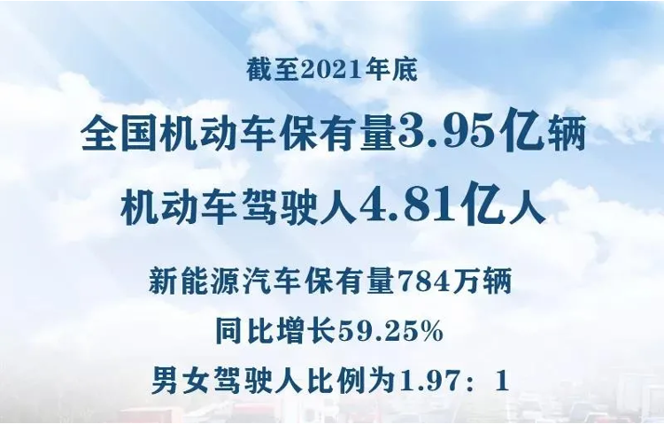 據(jù)公安部統(tǒng)計,2021年全國機動車保有量達(dá)3.95億輛,其中汽車3.02億輛;機動車駕駛?cè)诉_(dá)4.81億人,其中汽車駕駛?cè)?.44億人。2021年全國新注冊登記機...