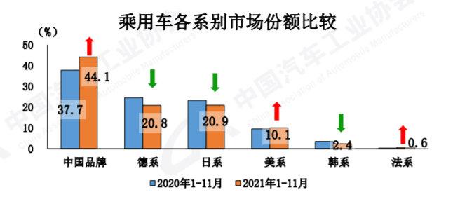11月,汽車芯片供應(yīng)依然緊張,疊加國(guó)內(nèi)散點(diǎn)疫情反復(fù)的影響,乘用車市場(chǎng)繼續(xù)低位運(yùn)行,態(tài)勢(shì)與10月基本相當(dāng)。數(shù)據(jù)顯示,11月,乘用車產(chǎn)銷分別完成223.1萬輛和219.2萬輛,環(huán)比分別增長(zhǎng)12.2%和9.2%,同比分別下降4.3%和4.7%,降幅比10月分別收窄0.4個(gè)百分點(diǎn)和0.3個(gè)百分點(diǎn)。與2019年相比,乘用車產(chǎn)銷同比增長(zhǎng)3%和6.5%,增幅比10月擴(kuò)大0.6和3.1個(gè)百分點(diǎn)。1-11月,乘用車產(chǎn)銷分別完成1887.9萬輛和1906.0萬輛,同比分別增長(zhǎng)6.9%和7.1%,增幅比1-10月均回落1.7個(gè)百分點(diǎn)。與2019年同期相比,產(chǎn)銷同比分別下降1.7%和1%,降幅比1-10月分別收窄0.6和0.9個(gè)百分點(diǎn)。