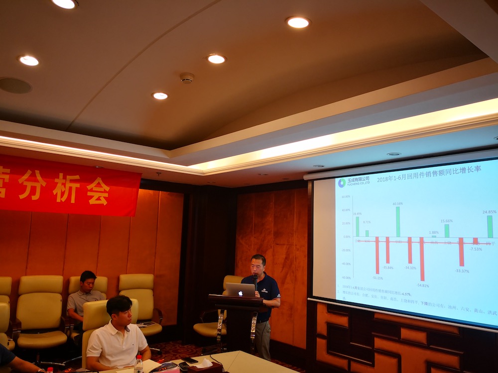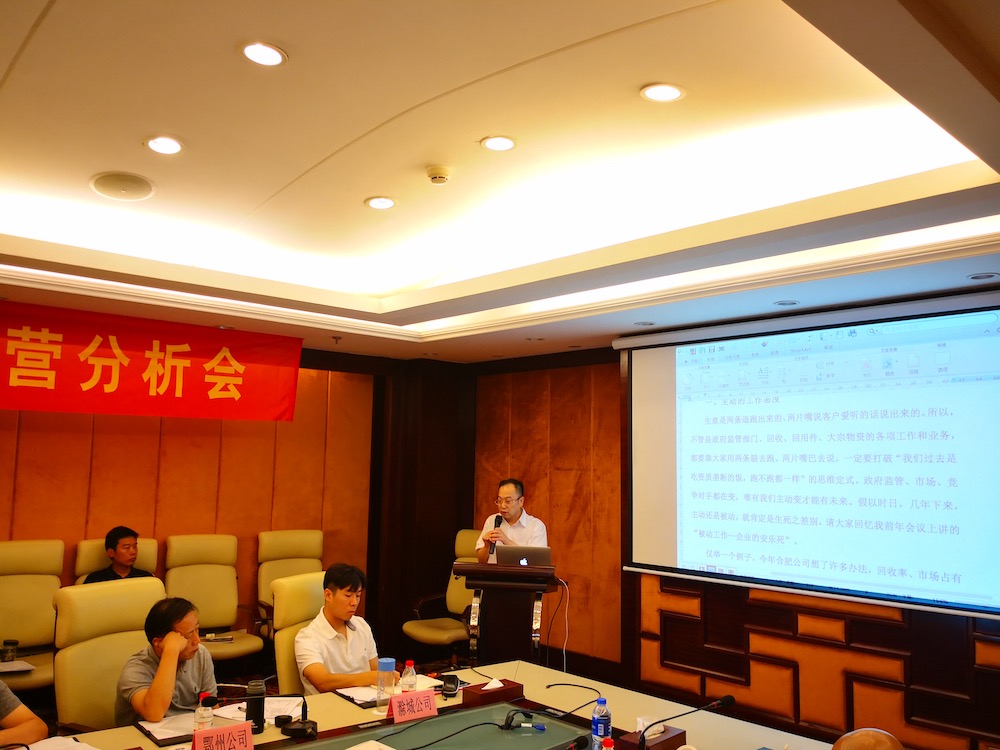 7月21-22日,玉成有限公司2018年上半年度經(jīng)營分析會在合肥外經(jīng)戴維斯酒店召開,報廢車業(yè)務板塊合資公司董事長、總經(jīng)理,集團本部骨干員工共計近40人參加了會議,會議分別由副總裁何學海和戴子海主持。